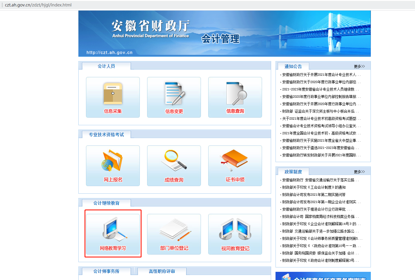1、进入安徽省会计人员网络继续教育报名系统