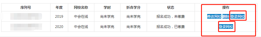 2、选择学习年度和网校